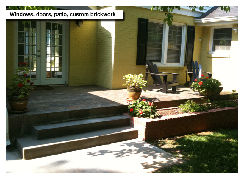 Patio, doors, windows, brickwork.